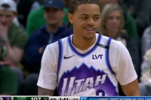 GIF-乔治三分三不沾 自己退防笑得很开心