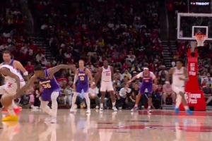 体育资讯3月19日讯 NBA常规赛,湖人半场67-55领先火箭。