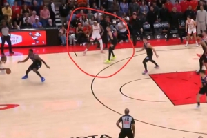 火箭主场123-122险胜热火,最后一攻阿门补篮绝杀,在他发边线球之后是希罗和他对位,但希罗注意力一直在持球的杜兰特这边,完全漏掉了偷偷跑到篮下的阿门。