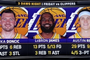 本赛季至今的55场比赛,东契奇、詹姆斯和里夫斯共同出战了其中11场比赛,战绩为8胜3负。