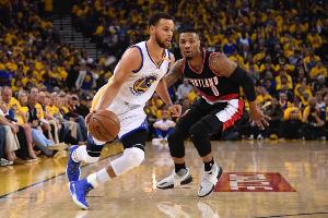 库里来到利拉德的位置上对后者说:“看看这是谁!很高兴见到你,兄弟。”两人拥抱致意并寒暄了数句。
